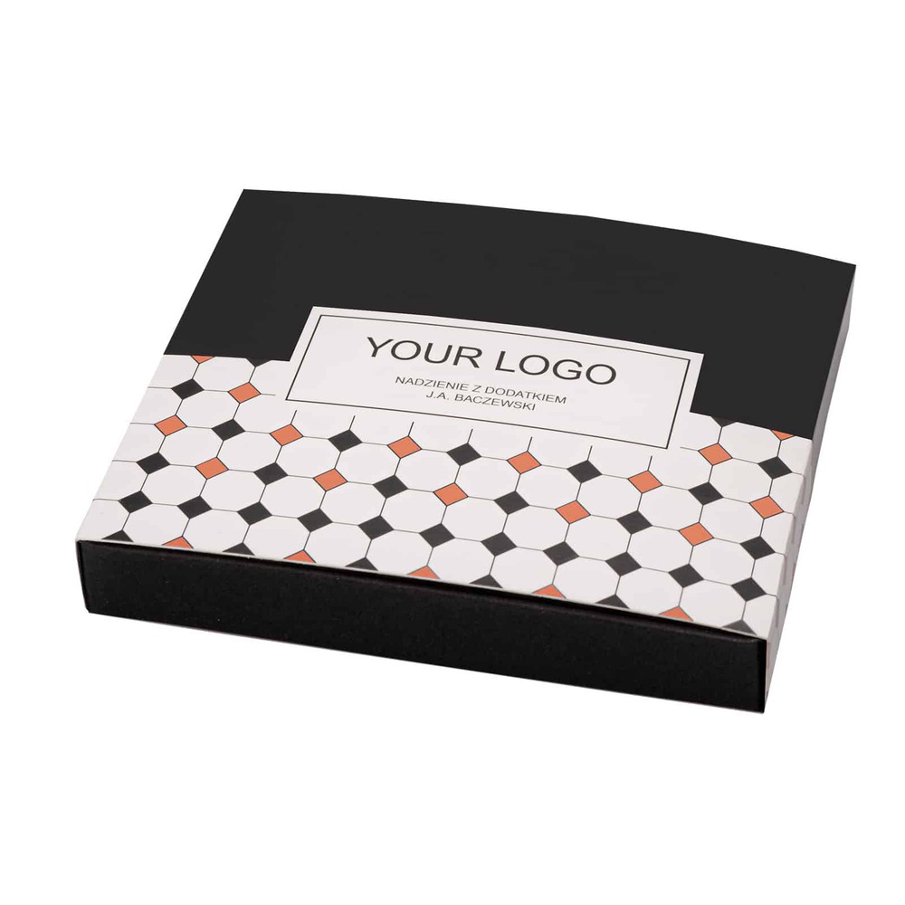 Praliny premium to świetny pomysł na drobny, elegancki upominek, tym bardziej, że czekoladki zapakowane są w stylowe pudełko utrzymane w estetyce art deco. Stylowy print widoczny na opakowaniu nawiązuje do wzoru widocznego na podłodze w ikonicznej kawiarni cafe bristol.