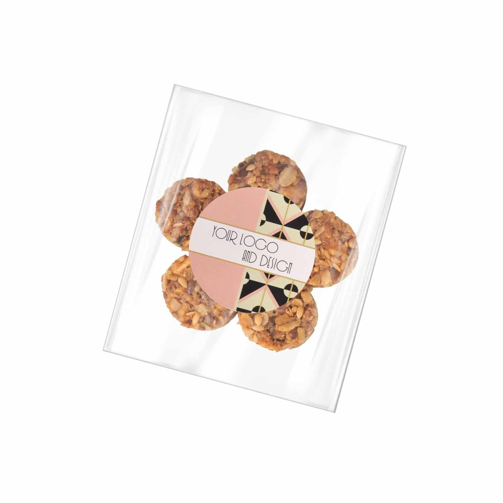 Batonik zabezpieczony jest folią kompostowalną. Opakowanie zdobi etykieta, wykonana z papieru z certyfikatem fsc – którą przeznaczamy całkowicie dla Twojej dyspozycji. Możesz ją w pełni spersonalizować, więc powiedz, z jakim przekazem chcesz trafić do odbiorców, a my wyeksponujemy na etykiecie dowolną grafikę lub treść i oczywiście – Twoje logo.