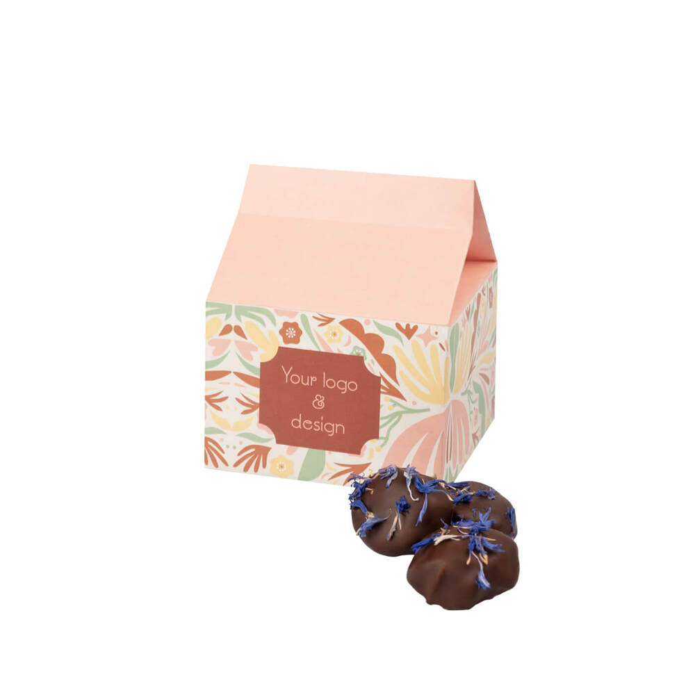 Klasyka gatunku czyli słodkie śliwki suszone oblane gęstą, kremową czekoladą mleczną - udekorowane płatkami bławatka. Słodki przysmak uwielbiany od dawna – teraz te tradycyjne słodycze, w nowym wydaniu, mogą posłużyć Twojej marce jako gadżet reklamowy.