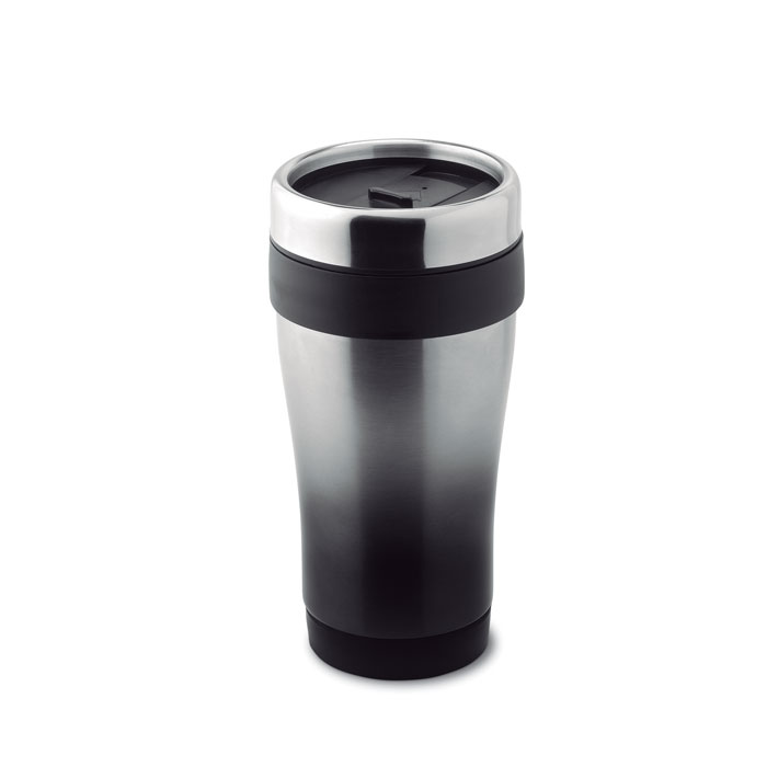 Kubek izotermiczny ze stali nierdzewnej, wnętrze z PP, pokrywka z plastiku. Pojemność 455ml.
