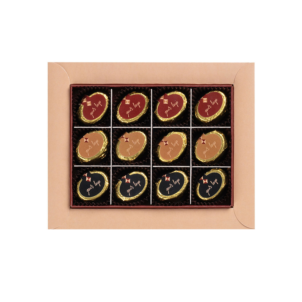 Praliny elipsa logo maxi 12 szt – elegancja i smak w jednym opakowaniu.