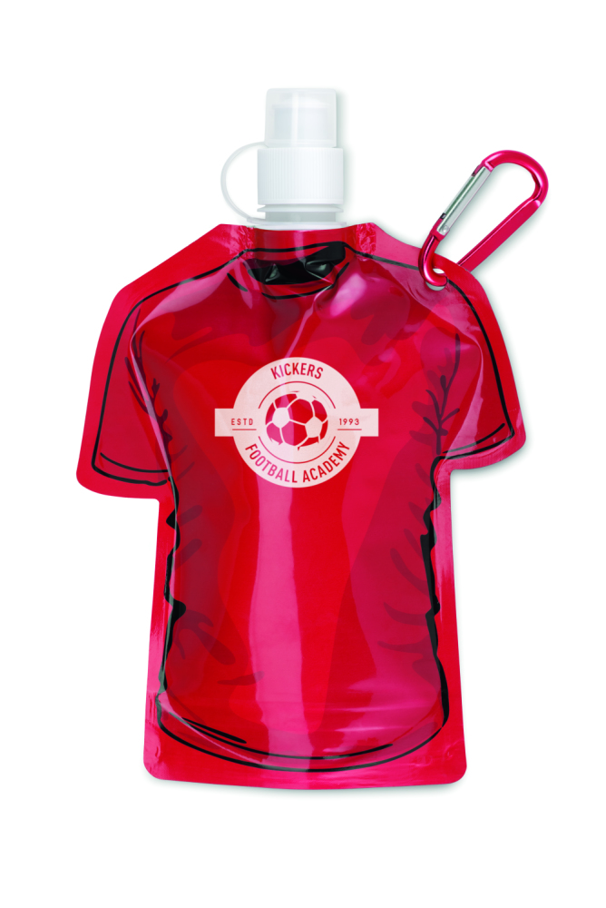 Butelka w kształcie t-shirta z karabińczykiem, nie zawiera BPA. Pojemność: 480ml.