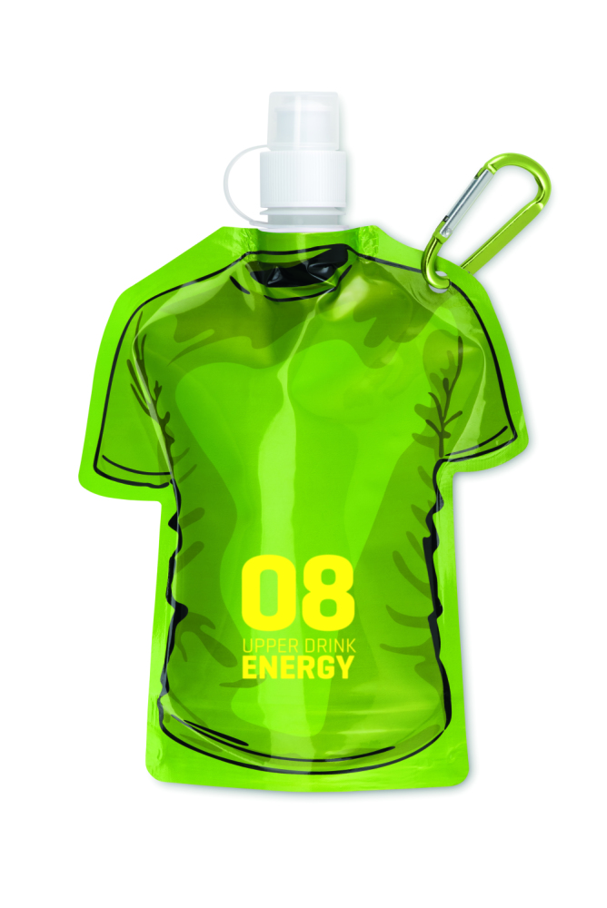 Butelka w kształcie t-shirta z karabińczykiem, nie zawiera BPA. Pojemność: 480ml.
