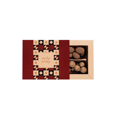 Nasza bombonierka z bakaliami dostępna jest w eleganckim papierowym opakowaniu, które można dostosować do potrzeb Twojej firmy. Wybierz spośród trzech rodzajów papieru: biały standardowy, papier kraft lub papier ecru z dodatkiem włókien trawy. Wszystkie materiały są biodegradowalne, nie zawiera plastiku.
