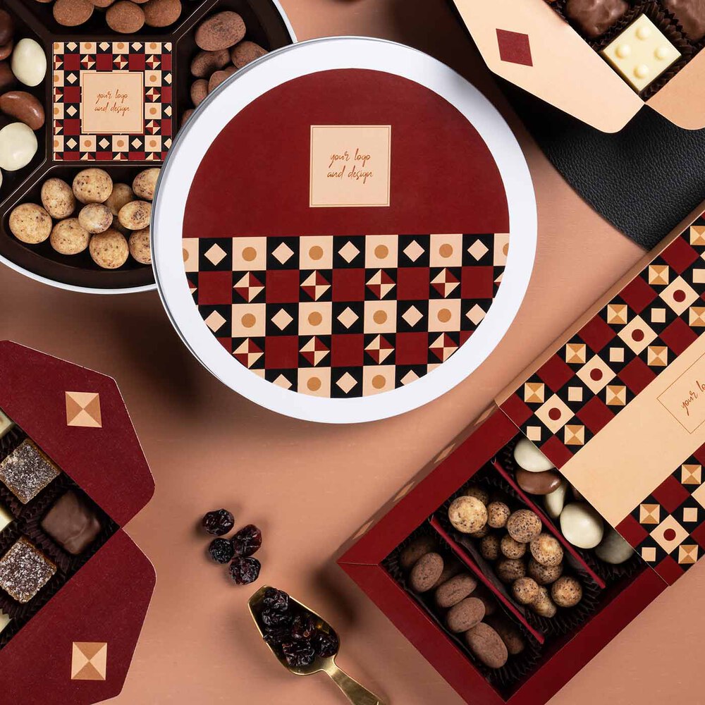 Odkryj ekskluzywną KOLEKCJĘ NUTTY BLISS MAXI, idealną na wyjątkowe okazje biznesowe. Nasza maxi bombonierka z bakaliami to wyrafinowany i smaczny prezent, który pozwoli wyróżnić Twoją markę i pozostawi niezapomniane wrażenie. Zestaw zawiera: ciasteczka korzenne oblane białą, mleczną i deserową czekoladą, migdały w mlecznej czekoladzie posypane cynamonem, rodzynki w białej czekoladzie obtoczone kawą, skórkę pomarańczy zanurzoną w deserowej czekoladzie z nutą Earl Grey. Kolekcja Nutty Bliss Maxi – elegancja i smak w biznesowym wydaniu. Duża bombonierka z bakaliami oferuje możliwość pełnej personalizacji szaty graficznej opakowania. Możesz wybrać jeden z trzech rodzajów papieru: biały standardowy, papier kraft lub ekologiczny papier ecru z dodatkiem włókien trawy. Wszystkie materiały są biodegradowalne, co czyni ten zestaw nie tylko eleganckim, ale także przyjaznym dla środowiska. Kolekcja Nutty Bliss Maxi - wyrafinowana kompozycja smaku i stylu. Idealne okazje biznesowe: Podziękowanie dla kluczowych klientów po zakończeniu projektu – elegancki sposób na wyrażenie wdzięczności za owocną współpracę. Upominek na konferencje i targi – podkreśl profesjonalizm i dbałość o szczegóły, wręczając personalizowany zestaw partnerom i uczestnikom wydarzeń biznesowych.