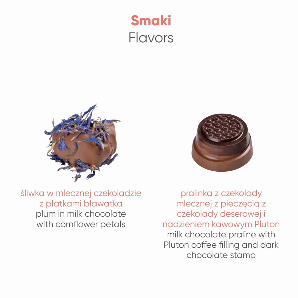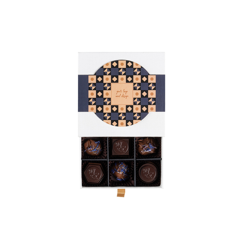 Bombonierka Coffee Bliss Moments to elegancka bombonierka reklamowa, która zawiera wyśmienite czekoladki mleczne z nadzieniem kawowym pluton oraz śliwki w czekoladzie, obsypane płatkami bławatka.