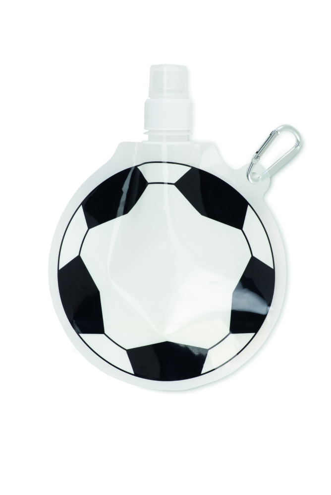 Składana butelka w kształcie piłki o pojemności 500ml to świetny gadżet dla miłośnika piłki nożnej. Butelka została wykonana z z plastiku wolnego od BPA oraz posiada karabińczyk, który pozwoli sportowemu fanowi cieszyć się meczem bez trzymania butelki ciągle w ręce.