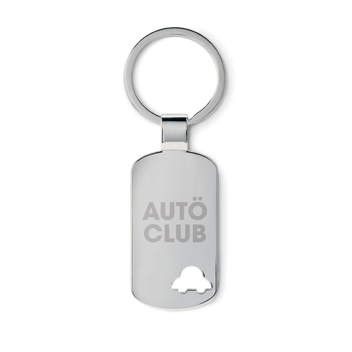 Metalowy brelok do kluczy z motywem samochodu. Pakowany w indywidualny, czarny kartonik.