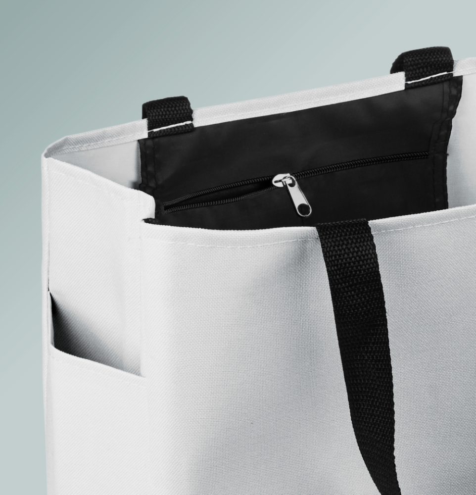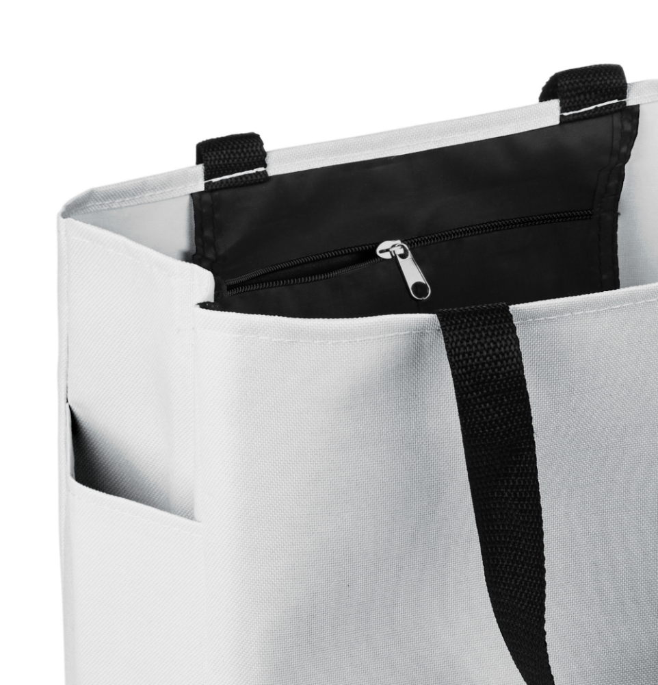 Torba na zakupy wykonana z poliestru 600D z boczną kieszonką zamykaną na zamek. Posiada długie i krótkie rączki.
