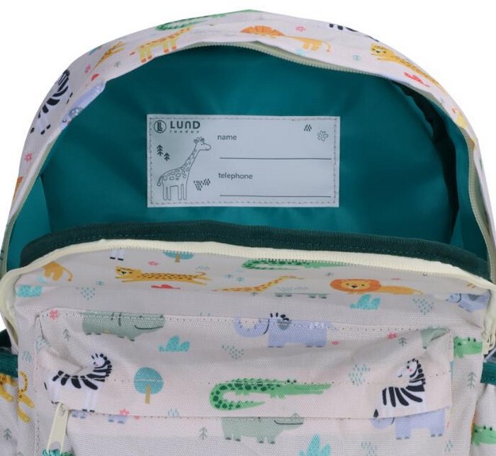 Uroczy plecak dla dzieci Lund London Little Lund z motywem Safari. Idealny do przedszkola, na wycieczki czy spacery. Lekki i wygodny dla najmłodszych. Kolorystyka i grafika inspirowane safari.