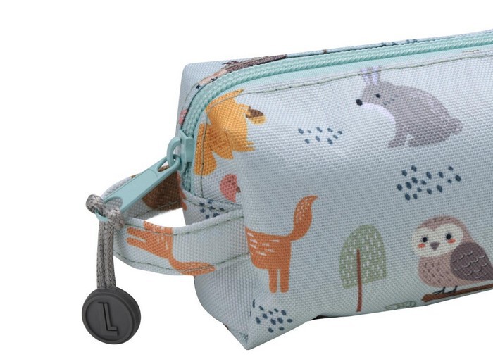 Praktyczny piórnik dla dzieci Lund London Little Lund z motywem Woodland (leśnym). Idealny do przechowywania przyborów szkolnych. Kolorystyka i grafika inspirowane lasem.