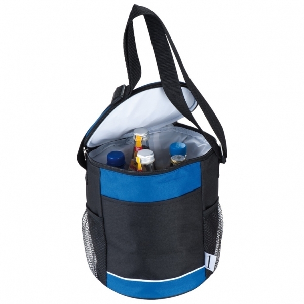 Torba termiczna to idealne rozwiązanie dla osób, które cenią sobie wygodę i praktyczność. Dzięki swojemu okrągłemu kształtowi idealnie sprawdzi się do przechowywania napojów bez marnowania przestrzeni wewnątrz torby i pozwoli im zachować odpowiednią temperaturę na dłużej. Torba wykonana jest z wytrzymałego poliestru 600D, dzięki czemu jest trwała i nadaje się do przenoszenia nawet ciężkiej zawartości. Jej unikalny kształt w formie puszki oraz wygodne uchwyty sprawiają, że jest łatwa do przenoszenia i użycia w każdej sytuacji. Torba posiada jedną główną komorę chłodzącą, zamykaną na wygodny w użytkowaniu zamek u góry torby, który ułatwia dostęp do jej wnętrza. Dodatkowo, torba wyposażona jest w dwie kieszonki z siateczki, idealne na drobne przedmioty, takie jak klucze czy telefon. Regulowany pasek umożliwia dostosowanie długości do indywidualnych potrzeb, co zapewnia komfort noszenia. Wszystko to czyni ją doskonałym wyborem na pikniki, plaże, wycieczki, czy imprezy plenerowe.