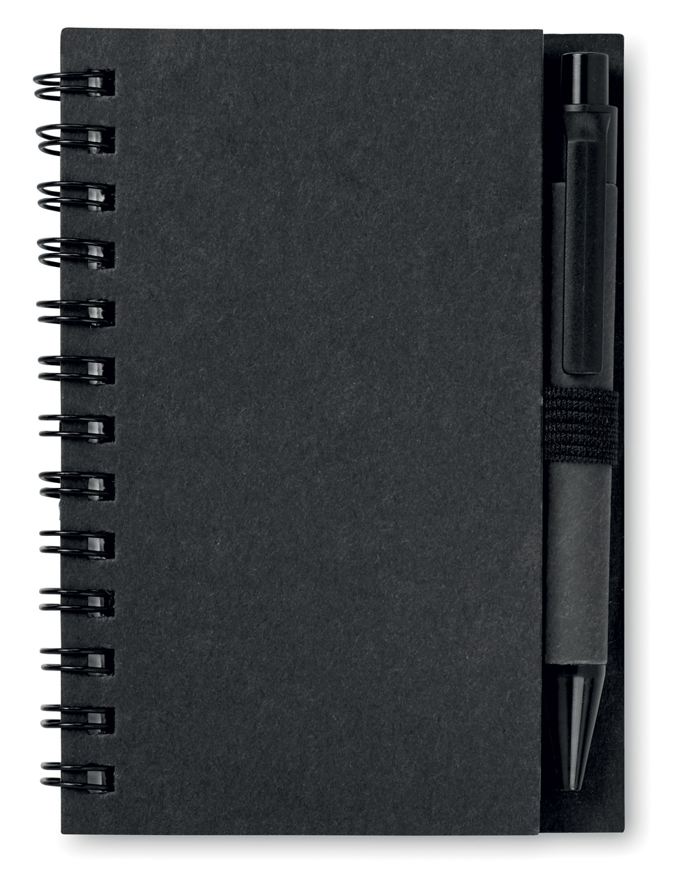 Notatnik 40-to kartkowy, czysty z długopidem biodegradowalnym z boku. Niebieski wkład.