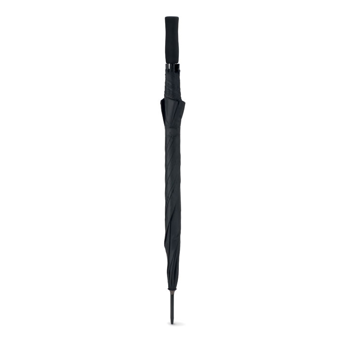 Parasol automatyczny 23 cale wykonany z poliestru 190T, z czernionym metalowym trzonem i ożebrowaniem, czarne plastikowe zakończenia. Rączka wykonana z pianki EVA, zapięcie manualne.