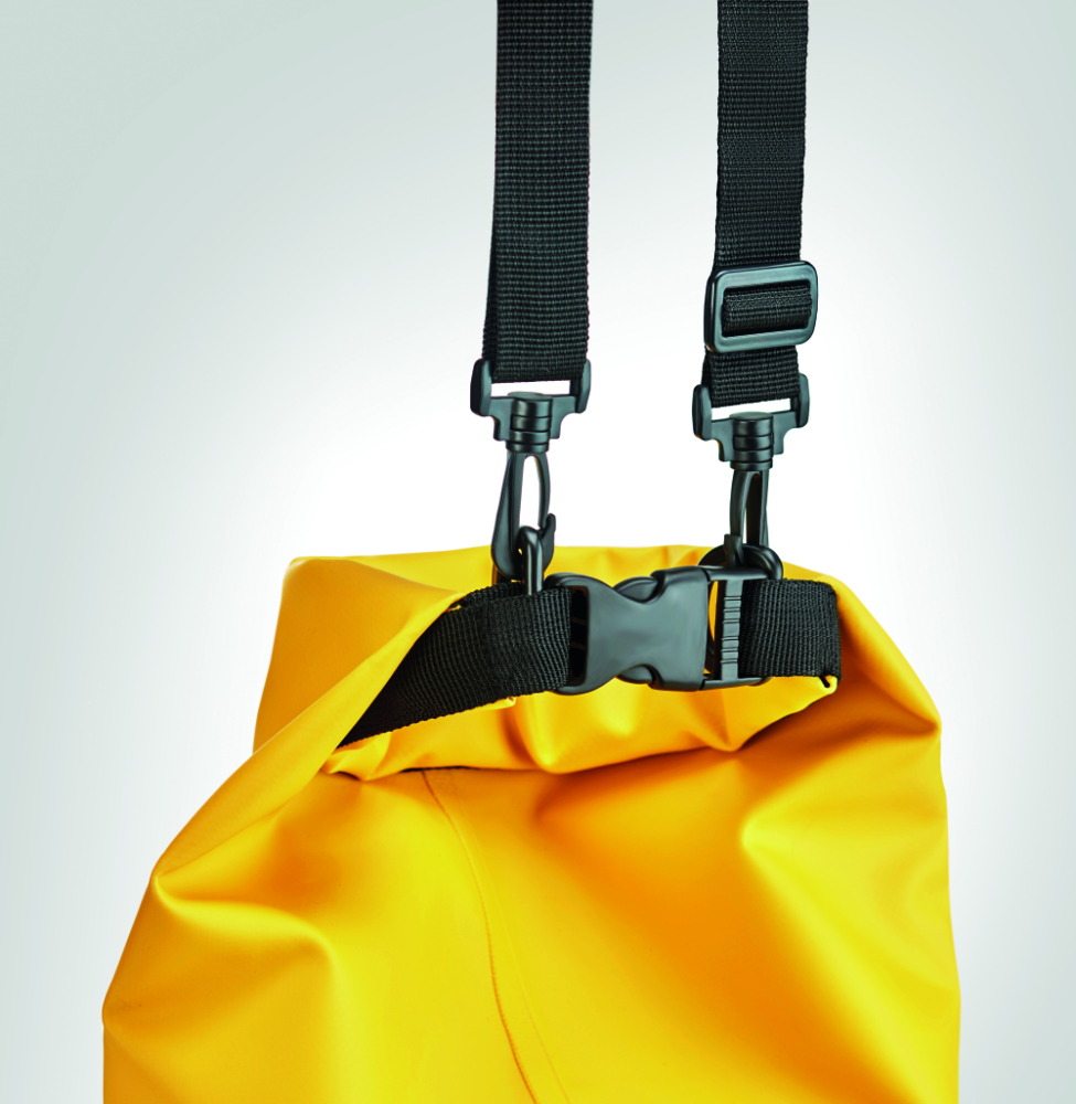 Wodoszczelna torba z materiały PVC o pojemności 10L. Posiada regulowany pasek.