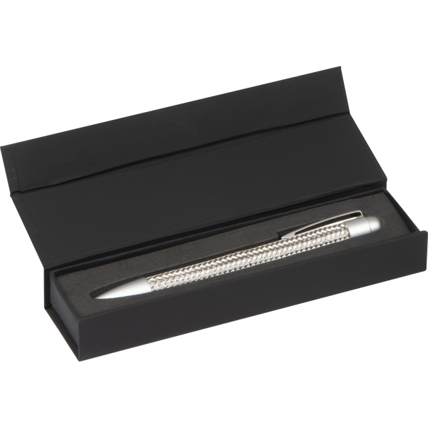 Długopis CrisMa to wyjątkowe połączenie elegancji i funkcjonalności. Wykonany z wysokiej jakości metalu, zachwyca starannym wykończeniem i unikalnym designem. Jego ergonomiczna forma sprawia, że doskonale leży w dłoni, a niebieski wkład zapewnia płynne i precyzyjne pisanie.Doskonały wybór dla osób ceniących stylowe akcesoria piśmiennicze. Możliwość umieszczenia logotypu na klipsie czyni go idealnym gadżetem reklamowym.