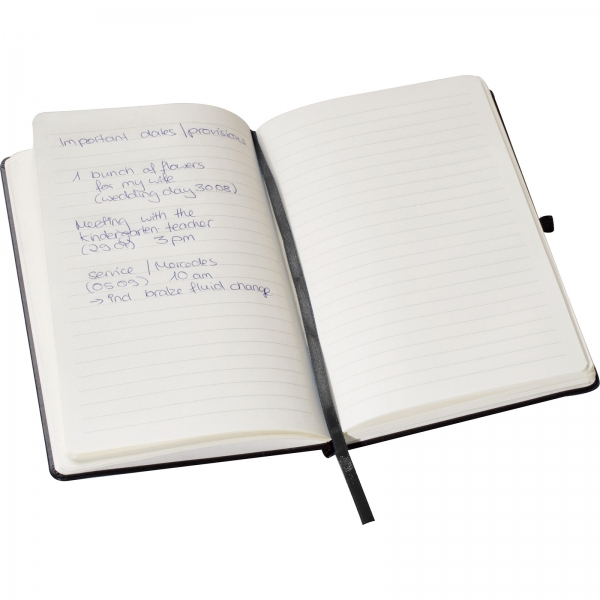 Notatnik A5 w linie to eleganckie i funkcjonalne akcesorium, które sprawdzi się zarówno w pracy, jak i w codziennym użytkowaniu. Posiada wysokiej jakości okładkę z imitacji skóry, która nadaje mu stylowy wygląd, oraz 80 kartek w linie, idealnych do robienia notatek, szkicowania czy planowania. Notatnik wyposażony jest w zakładkę, dzięki której łatwo znaleźć odpowiednią stronę, a także w praktyczną kieszonkę na wewnętrznej stronie okładki, w której można przechować drobne dokumenty. Całość zamykana jest elastyczną taśmą, co zapewnia bezpieczeństwo zapisanych materiałów.Idealny do biura, szkoły czy jako notatnik na spotkania biznesowe – Notatnik A5 w linie to połączenie elegancji i funkcjonalności, które doceni każdy, kto potrzebuje porządku w swoim codziennym życiu.
