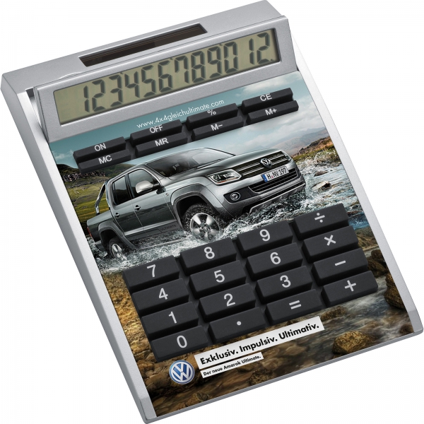 Kalkulator CrisMa to elegancka i funkcjonalna propozycja, która łączy nowoczesny design z niezawodną wydajnością. Posiada 12-cyfrowy wyświetlacz, a jego srebrna obudowa z białą nakładką daje możliwość pełnej personalizacji poprzez nadruk. Zasilany zarówno energią słoneczną, jak i baterią, zapewnia wygodę użytkowania w każdych warunkach.Idealny do biura, szkoły czy na prezent, ten kalkulator łączy prostotę obsługi z estetycznym wyglądem, stanowiąc praktyczne akcesorium, które świetnie wpasuje się w każde środowisko pracy.