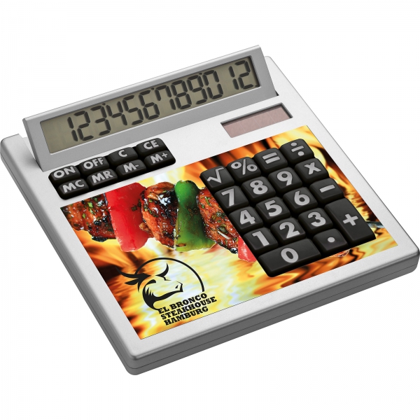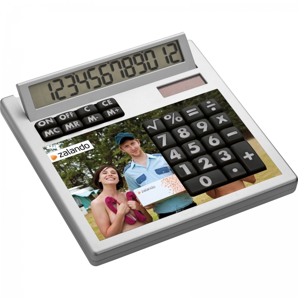 Kalkulator CrisMa to elegancki i funkcjonalny model z 12-cyfrowym wyświetlaczem, który łączy nowoczesny design z praktycznością. Jego srebrna obudowa z białą nakładką daje możliwość pełnej personalizacji, co czyni go doskonałym wyborem na prezent firmowy. Zasilany zarówno energią słoneczną, jak i baterią, zapewnia niezawodną pracę w każdych warunkach.Idealny do biura, szkoły czy pracy w terenie, ten kalkulator łączy estetykę z wygodą użytkowania, stając się praktycznym narzędziem w codziennych obliczeniach.