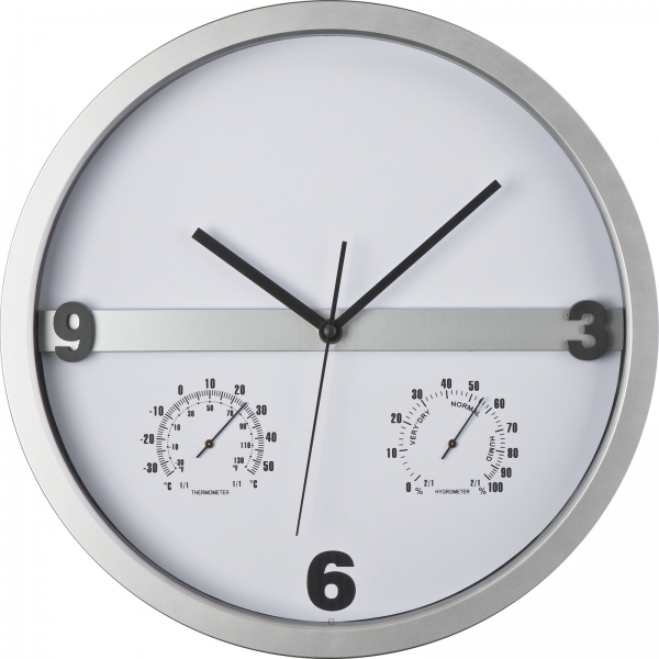 Zegar ścienny CrisMa to przykład połączenia minimalistycznego designu z wysoką funkcjonalnością. Jego prosta, elegancka forma i wytrzymała obudowa sprawiają, że idealnie wpasowuje się w nowoczesne wnętrza, zarówno w biurach czy domu. To zegar, który wyróżnia się ponadczasową estetyką, pasującą do różnych stylów aranżacji.Duża powierzchnia tarczy zegara zapewnia mnóstwo miejsca na umieszczenie logo, hasła reklamowego lub dowolnego nadruku, co czyni go doskonałym wyborem na prezent reklamowy lub element wyposażenia firmowego. Zegary CrisMa to świetne narzędzie do promocji wizerunku marki, ponieważ możliwość umieszczenia logo na tarczy zegara sprawia, że staje się on wyjątkowym nośnikiem reklamy, który będzie stale obecny w widocznych miejscach, jednocześnie pełniąc rolę praktyczną.Zegar posiada cichy mechanizm, co sprawia, że jest idealnym rozwiązaniem do biur, sypialni oraz innych miejsc, gdzie cisza jest szczególnie ważna. Brak irytujących dźwięków tykających wskazówek umożliwia komfortowe użytkowanie, nie zakłócając pracy czy odpoczynku.Dodatkowym atutem tego modelu jest wskaźnik temperatury oraz wilgotności powietrza, który pozwala na bieżąco monitorować warunki atmosferyczne w pomieszczeniu. To doskonała funkcjonalność, szczególnie w biurach czy miejscach, gdzie zależy nam na utrzymaniu odpowiednich warunków do pracy lub odpoczynku.Obudowa zegara jest wyjątkowo wytrzymała, co gwarantuje długowieczność i odporność na uszkodzenia mechaniczne. Zegar jest zasilany baterią (brak baterii w zestawie), co sprawia, że jest łatwy do zamontowania w dowolnym miejscu, bez konieczności szukania źródła zasilania.Zegar ścienny CrisMa to doskonały wybór dla osób, które szukają eleganckiego, praktycznego i funkcjonalnego rozwiązania. Jego design, jakość wykonania oraz dodatkowe funkcje, takie jak wskaźnik temperatury i wilgotności, sprawiają, że jest to produkt, który nie tylko spełnia swoją podstawową rolę, ale także stanowi estetyczny element dekoracyjny, doskonale pasujący do nowoczesnych przestrzeni.