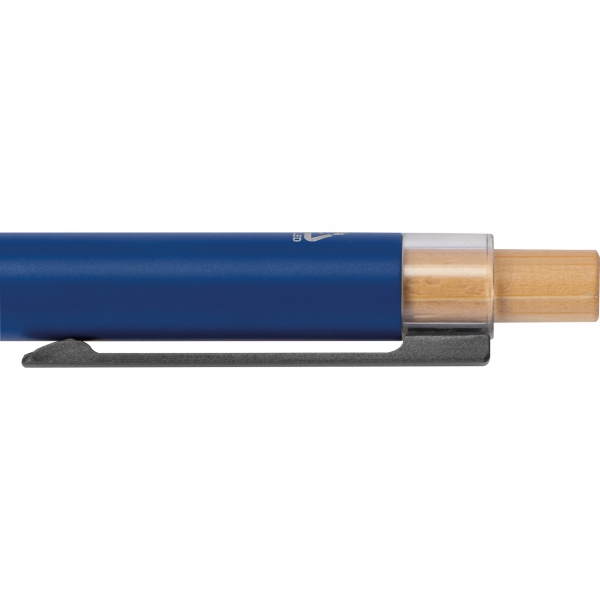 Długopis aluminiowy z recyklingu to doskonały wybór dla osób, które cenią ekologiczną odpowiedzialność, a jednocześnie poszukują produktu wysokiej jakości. Wykonany z aluminium pochodzącego z recyklingu, długopis łączy nowoczesny design z dbałością o środowisko. Wyjątkowy bambusowy przycisk nadaje mu elegancki, naturalny charakter.Dzięki solidnej konstrukcji i odpowiedniemu ciężarowi, długopis jest nie tylko wytrzymały, ale również świetnie wyważony, zapewniając komfort podczas pisania. Gładka, matowa powłoka sprawia, że długopis przyjemnie leży w dłoni, a niebieski wkład umożliwia precyzyjne pisanie.