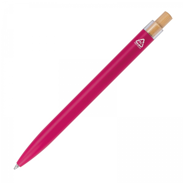 Długopis aluminiowy z recyklingu to doskonały wybór dla osób, które cenią ekologiczną odpowiedzialność, a jednocześnie poszukują produktu wysokiej jakości. Wykonany z aluminium pochodzącego z recyklingu, długopis łączy nowoczesny design z dbałością o środowisko. Wyjątkowy bambusowy przycisk nadaje mu elegancki, naturalny charakter.Dzięki solidnej konstrukcji i odpowiedniemu ciężarowi, długopis jest nie tylko wytrzymały, ale również świetnie wyważony, zapewniając komfort podczas pisania. Gładka, matowa powłoka sprawia, że długopis przyjemnie leży w dłoni, a niebieski wkład umożliwia precyzyjne pisanie.