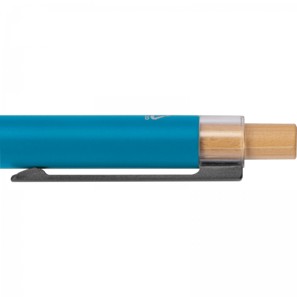 Długopis aluminiowy z recyklingu to doskonały wybór dla osób, które cenią ekologiczną odpowiedzialność, a jednocześnie poszukują produktu wysokiej jakości. Wykonany z aluminium pochodzącego z recyklingu, długopis łączy nowoczesny design z dbałością o środowisko. Wyjątkowy bambusowy przycisk nadaje mu elegancki, naturalny charakter.Dzięki solidnej konstrukcji i odpowiedniemu ciężarowi, długopis jest nie tylko wytrzymały, ale również świetnie wyważony, zapewniając komfort podczas pisania. Gładka, matowa powłoka sprawia, że długopis przyjemnie leży w dłoni, a niebieski wkład umożliwia precyzyjne pisanie.