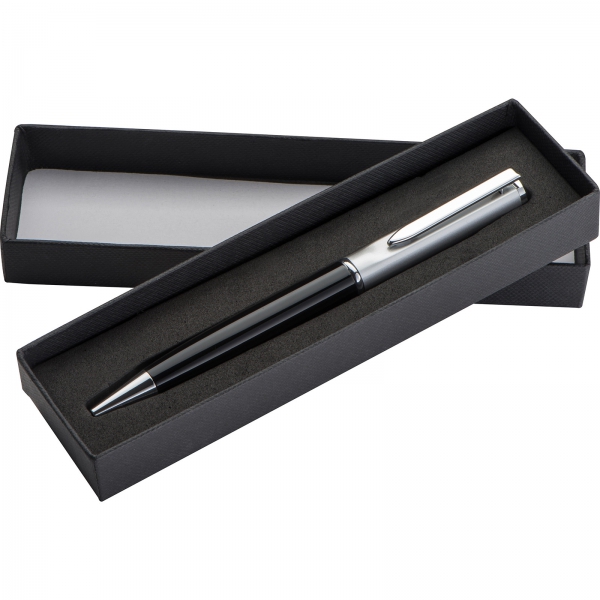 Długopis metalowy ze srebrnym wykończeniem to eleganckie połączenie stylu i funkcjonalności. Jego smukła, perfekcyjnie wyważona konstrukcja zapewnia wygodę pisania, a klasyczny design sprawia, że doskonale sprawdzi się w każdej sytuacji – od codziennych notatek po oficjalne podpisy.Wyposażony w niebieski wkład o dużej pojemności, gwarantuje płynność pisania i długą żywotność. Zapakowany w eleganckie kartonowe pudełko, stanowi idealny wybór na prezent lub stylowy dodatek do biurowego wyposażenia.