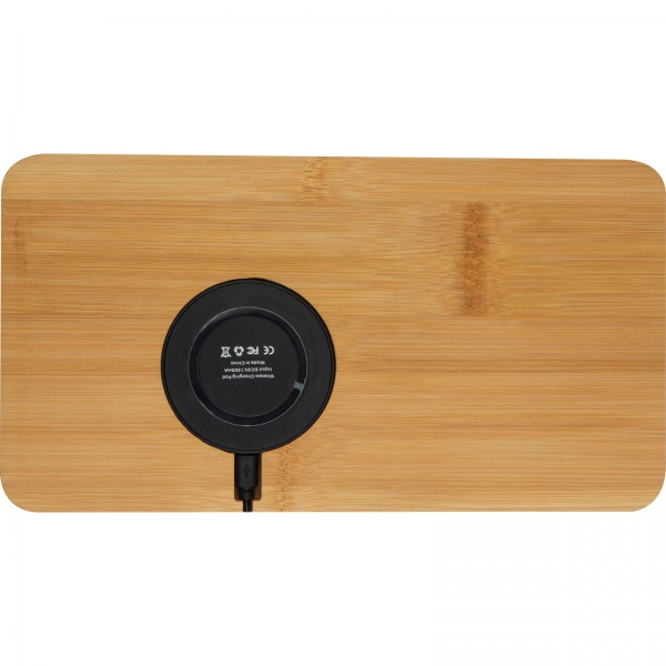 Elegancki bambusowy organizer na biurko, który łączy funkcjonalność z nowoczesnym designem. Wyposażony w bezprzewodową ładowarkę indukcyjną, umożliwia wygodne ładowanie smartfona bez potrzeby używania kabli. Dodatkowo posiada uchwyt na telefon oraz przestronny pojemnik na przybory biurowe, co pozwala na utrzymanie porządku w miejscu pracy.W zestawie znajduje się kabel ładujący USB, a całość wykonana z ekologicznego bambusa, co sprawia, że jest przyjazna dla środowiska. Idealny wybór do biura, które łączy estetykę z praktycznością.