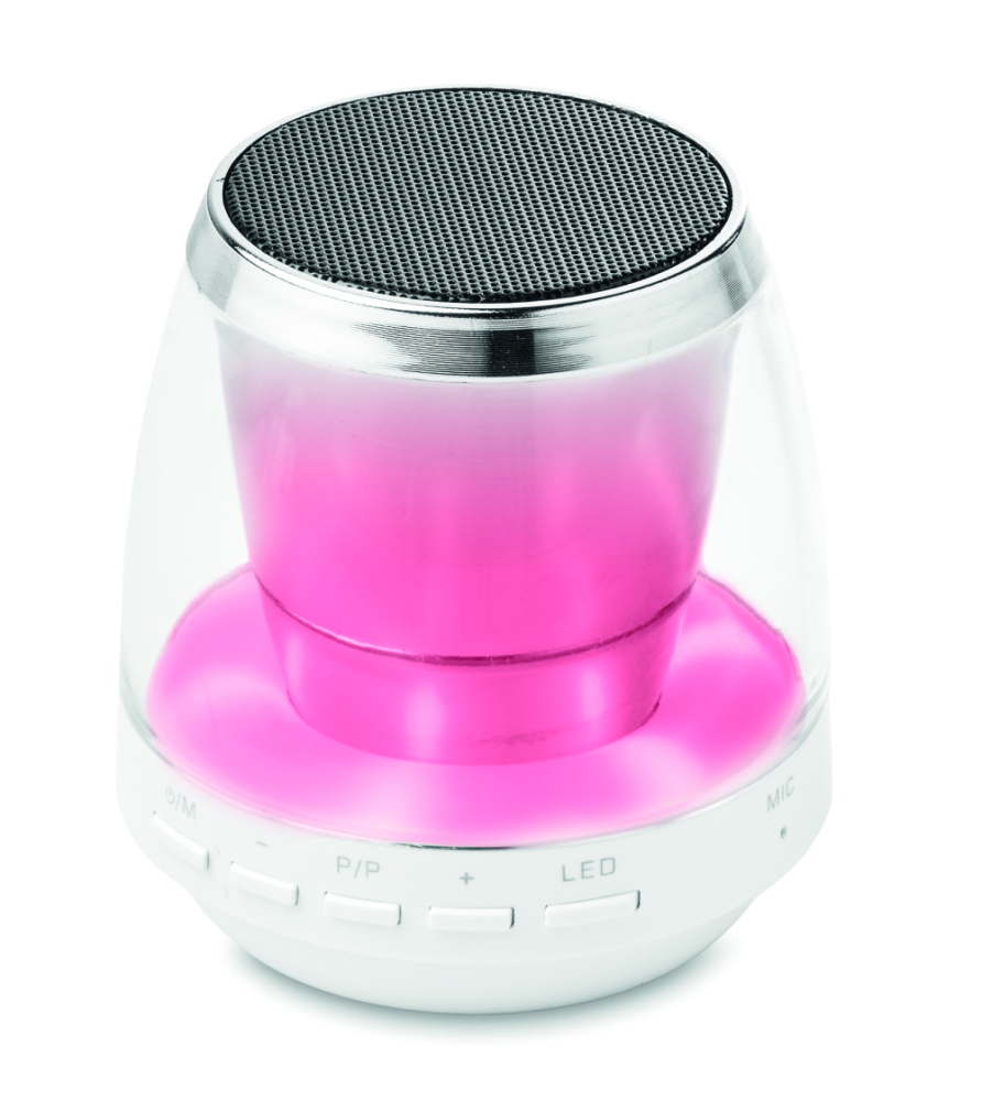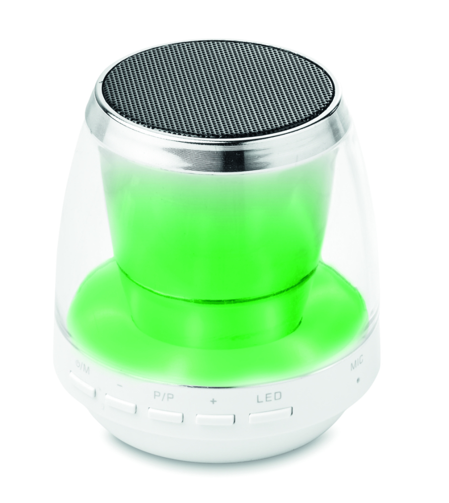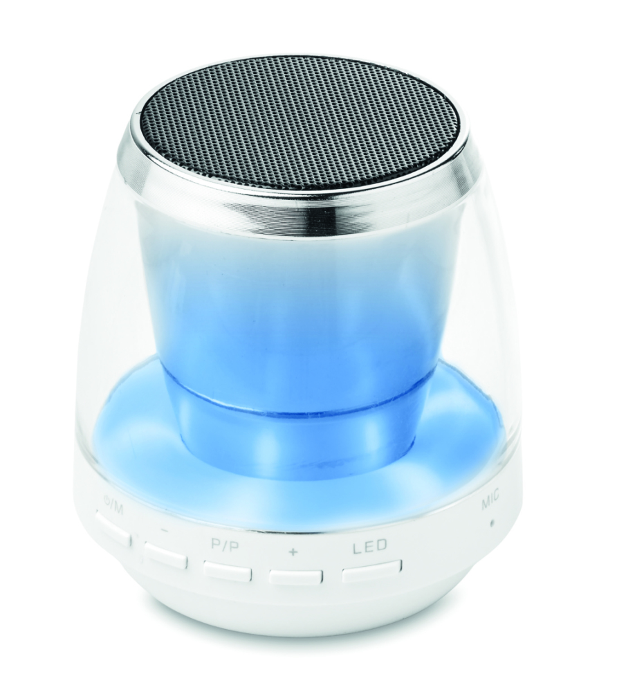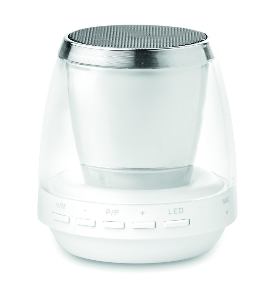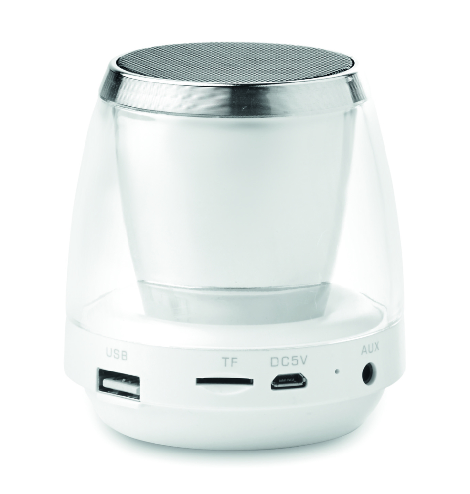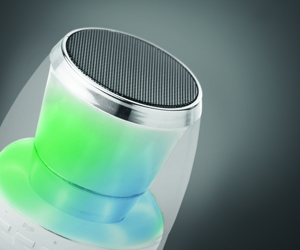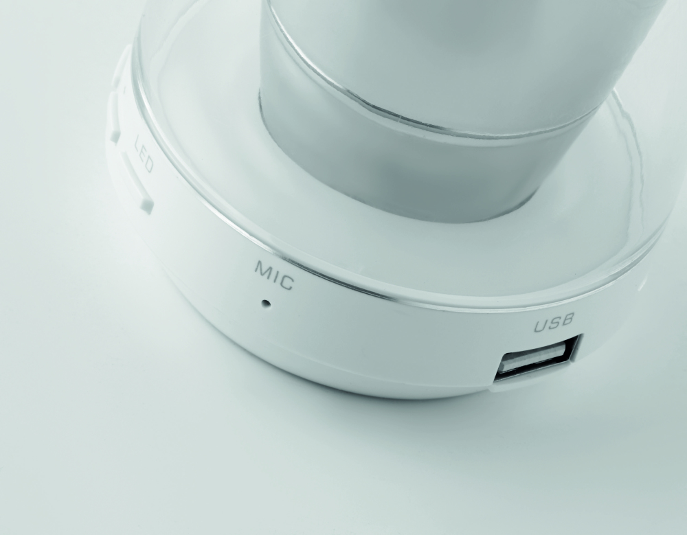 2 funkcje urządzenia: głośnik Bluetooth 2.1 i odtwarzacz muzyczny z ABS ze światłem. Dołączony akumulator litowo-jonowy 400 mAh i kabel mikro USB do ładowania. Dane wyjściowe: 3W, 4 Ohm oraz 5V.