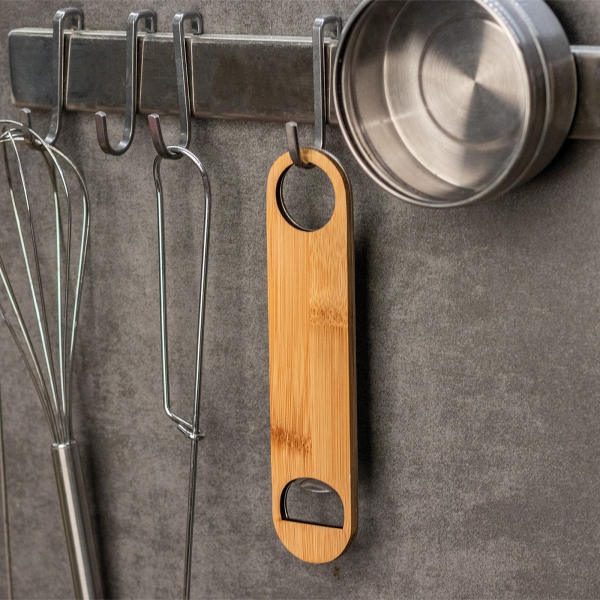 Elegancki otwieracz do butelek łączący funkcjonalność ze stylem. Wykonany ze stali nierdzewnej z elementami drewna bambusowego. Jego solidna konstrukcja zapewnia wygodę użytkowania, a materiał bambusowy nadaje mu wyjątkowego, ekologicznego charakteru.Idealny do codziennego użytku, doskonale sprawdzi się w kuchni, barze czy na spotkaniach towarzyskich. Dzięki połączeniu trwałości stali i naturalnego drewna, jest to produkt, który łączy nowoczesność z dbałością o środowisko.