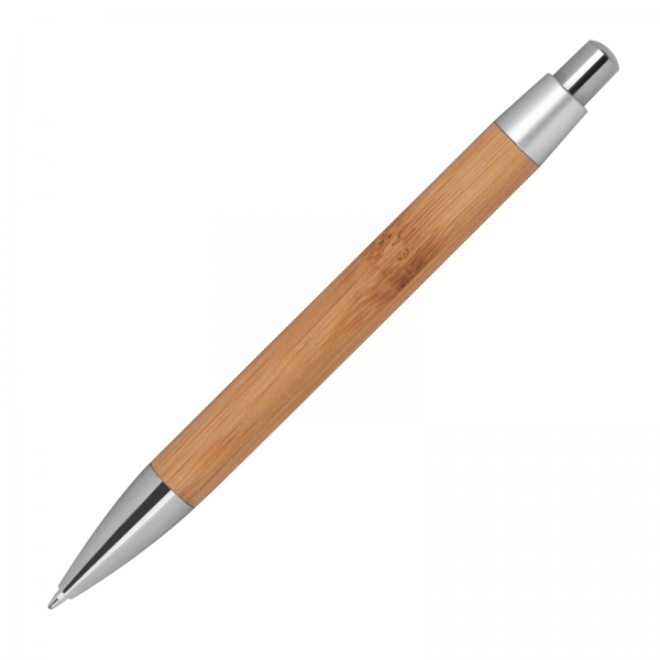 Długopis bambusowy to połączenie elegancji i natury, idealny dla osób, które cenią ekologiczne rozwiązania. Wykonany z naturalnego bambusa i ozdobiony srebrnymi elementami, stanowi stylowy dodatek do biura lub prezentu.Długopis wyposażony jest w wkład piszący na niebiesko o dużej pojemności, co zapewnia komfort użytkowania przez długi czas. Dzięki swojej lekkiej konstrukcji i przyjemnej w dotyku powierzchni, doskonale leży w dłoni, łącząc funkcjonalność z dbałością o środowisko.