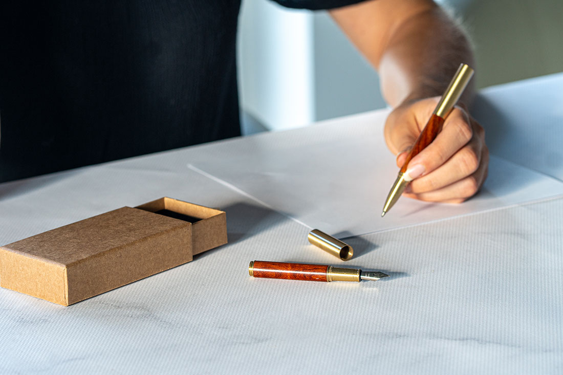 Zestaw piśmienny pióro kulkowe i wieczne to elegancka propozycja, która łączy funkcjonalność z naturalnym stylem. Wykonany z drewna i mosiądzu, zestaw oferuje doskonałą jakość, która z pewnością spełni oczekiwania osób ceniących sobie nie tylko estetykę, ale i komfort pisania. Zestaw w rozmiarze mini to wyjątkowy wybór zarówno do biura, jak i na prezent, który z pewnością zrobi wrażenie na każdym, kto go otrzyma.W skład zestawu wchodzą dwa pióra: pióro wieczne i pióro kulkowe. Pióro wieczne to klasyka wśród przyborów piśmienniczych, która zachwyca elegancją i precyzyjnością pisania. Dzięki doskonale dopasowanemu nabojowi, pióro wieczne zapewnia płynne i równomierne pisanie, co sprawia, że każda linia na kartce wygląda idealnie. Pióro kulkowe natomiast to praktyczna alternatywa, idealna do szybkiego pisania, charakteryzująca się dużą niezawodnością i wygodą w codziennym użytkowaniu.Zatyczki piór są zakręcane, co umożliwia ich łatwe zdejmowanie i zakładanie. Co więcej, można je również doczepić na końcu pióra, wydłużając je, co zwiększa komfort pisania, szczególnie przy długotrwałym użytkowaniu. Taki zabieg sprawia, że pióra w zestawie są nie tylko praktyczne, ale także dostosowane do indywidualnych preferencji użytkownika, zapewniając mu większą wygodę podczas pisania.Wszystkie elementy zestawu zostały starannie wykonane z drewna i mosiądzu, co nadaje im elegancki, a zarazem naturalny wygląd. Materiały te charakteryzują się wyjątkową trwałością, dzięki czemu pióra posłużą przez długi czas, zachowując swój pierwotny wygląd i funkcjonalność. Zestaw piśmienny jest także przyjazny dla środowiska, co czyni go doskonałym wyborem dla osób dbających o ekologię.Zestaw jest zapakowany w eleganckie kartonowe opakowanie prezentowe, co czyni go idealnym wyborem na prezent dla osób, które cenią elegancję oraz wysoką jakość w codziennych akcesoriach biurowych. To doskonały wybór na wyjątkowe okazje, takie jak urodziny, rocznice, czy jubileusze, gdzie liczy się nie tylko praktyczność, ale także estetyka.Zestaw piśmienny w rozmiarze mini to połączenie elegancji, funkcjonalności i trwałości, które sprawdzą się w każdym biurze, a także stanowią doskonały prezent, który zrobi wrażenie na każdym obdarowanym. Dzięki swojemu stylowemu wyglądowi i przemyślanej konstrukcji, będzie to doskonały wybór dla osób, które cenią komfort, jakość i naturalny design w swoich przyborach piśmienniczych.