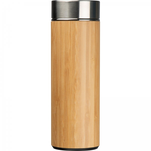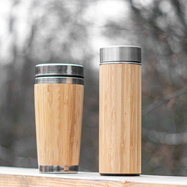 Zestaw kubek termiczny 360 ml i butelka termiczna 450 ml to eleganckie i funkcjonalne akcesoria, które idealnie sprawdzą się w codziennym życiu, jak i podczas podróży. Wykonane z najwyższej jakości materiałów, łączą w sobie nowoczesny design z dbałością o środowisko, oferując niezawodność i wygodę użytkowania przez wiele godzin.Butelka termiczna o pojemności 450 ml została stworzona z myślą o osobach, które cenią zdrowy tryb życia i dbają o szczegóły. Wykonana z trwałej stali nierdzewnej, a jej obudowa z naturalnego bambusa nadaje jej elegancki, ekologiczny wygląd. Butelka jest wyposażona w praktyczne sitko do zaparzania herbaty, co sprawia, że idealnie nadaje się do parzenia ulubionych napojów w czasie podróży czy pracy. Butelka utrzymuje temperaturę napojów przez długie godziny - ciepłe napoje pozostaną gorące aż do 6 godzin, a zimne przez 9 godzin. Jej szczelna konstrukcja sprawia, że możesz mieć pewność, iż nie nastąpi przypadkowe wylanie zawartości, co czyni ją bardzo wygodnym rozwiązaniem do noszenia w torbie. Butelka jest również bezpieczna do kontaktu z żywnością i przyjazna środowisku, dzięki zastosowaniu bambusa oraz stali nierdzewnej, które są materiałami trwałymi i łatwymi do recyklingu.Kubek termiczny o pojemności 360 ml to idealne rozwiązanie dla osób, które potrzebują termosu do napojów, ale w mniejszym, bardziej poręcznym wydaniu. Wykonany z wysokiej jakości stali nierdzewnej, kubek ma bambusową obudowę, która dodaje mu naturalnego charakteru i estetyki. Pokrywka, łącząca plastik i metal, zapewnia szczelność, a jej funkcjonalność sprawia, że napój nie wylewa się nawet podczas intensywnego użytkowania. Kubek zapewnia utrzymanie ciepła do 4 godzin, a zimnych napojów do 8 godzin, co czyni go doskonałym wyborem na codzienne poranki, spacery czy przerwy w pracy. Jest również bezpieczny do kontaktu z żywnością i przyjazny dla środowiska, co czyni go ekologiczną alternatywą dla jednorazowych kubków.Zestaw kubek termiczny 360 ml i butelka termiczna 450 ml to doskonałe akcesoria dla osób ceniących praktyczność, estetykę i ekologiczne rozwiązania. Ich właściwości termiczne, funkcjonalność oraz dbałość o detale sprawiają, że są one idealnym wyborem do biura, na prezent, czy też w codziennej rutynie. Ciepłe i zimne napoje pozostają w optymalnej temperaturze przez wiele godzin, a solidna konstrukcja oraz ekologiczne materiały sprawiają, że możesz cieszyć się nimi przez długi czas. Zestaw ten łączy w sobie styl, funkcjonalność i troskę o środowisko, co czyni go nie tylko praktycznym, ale i odpowiedzialnym wyborem.