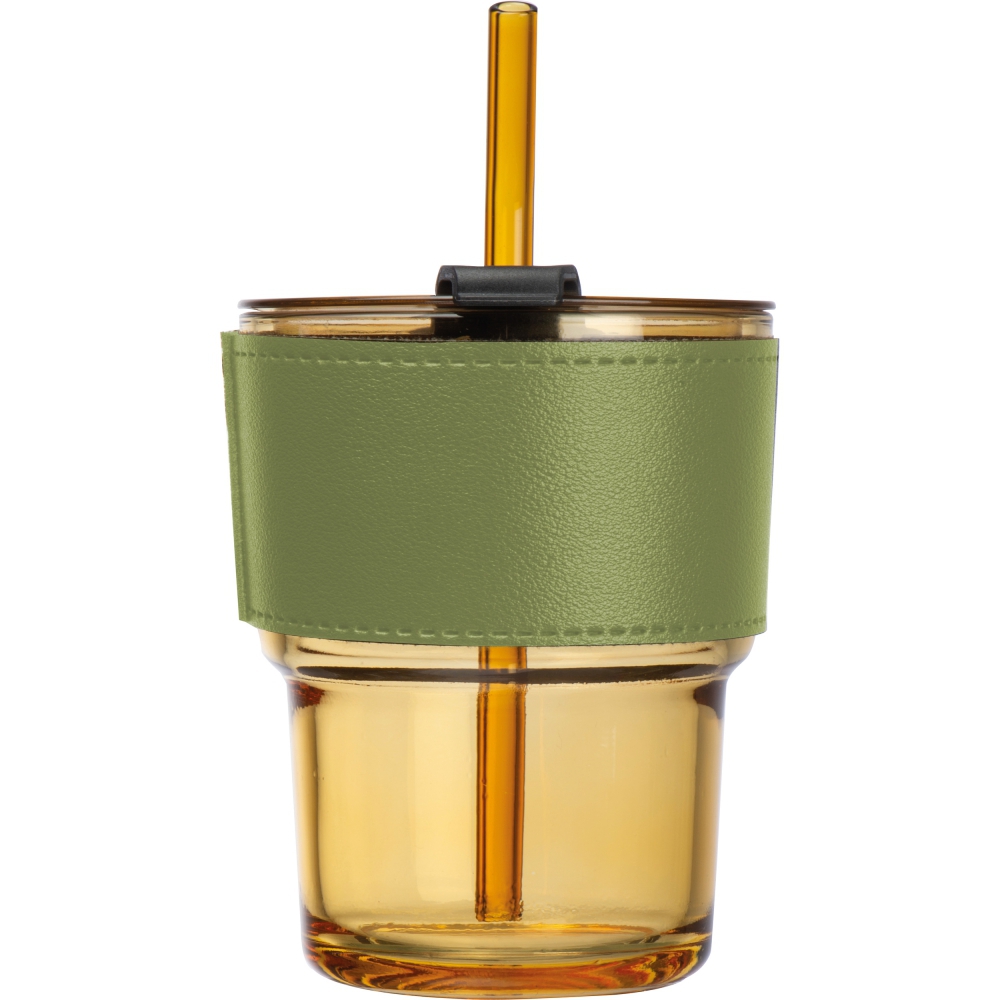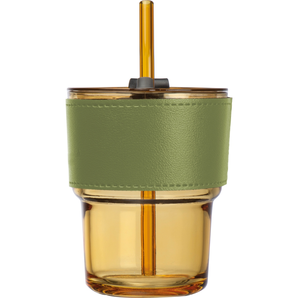 Kubek szklany ze słomką 320 ml CLEMENS / żółty