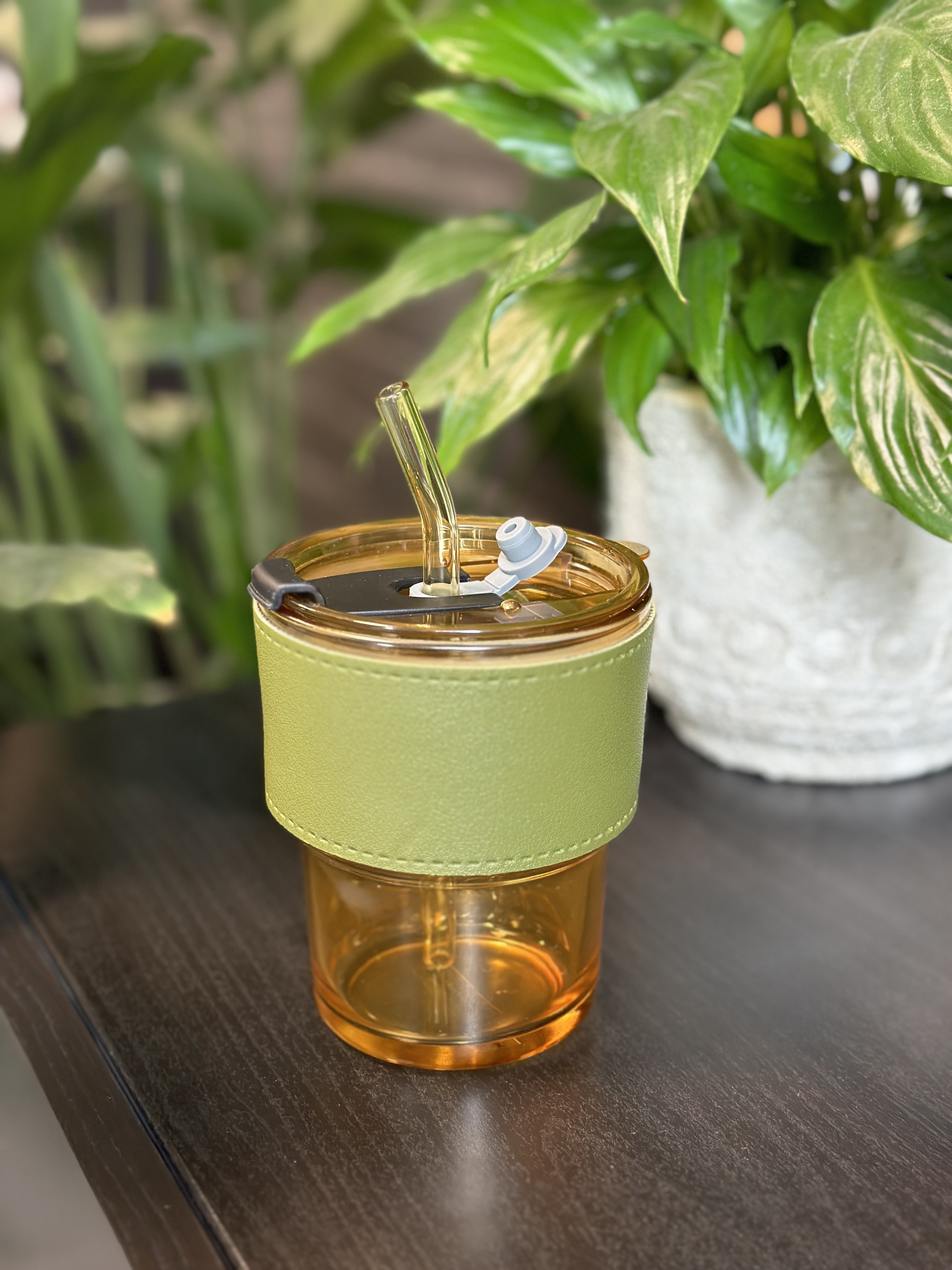 Kubek szklany ze słomką 320 ml to doskonały wybór dla osób ceniących styl, funkcjonalność i wygodę użytkowania. Wykonany z wysokiej jakości kolorowego szkła, łączy elegancję z praktycznymi rozwiązaniami, które sprawiają, że picie napojów staje się jeszcze bardziej komfortowe i przyjemne. Jego pojemność 320 ml idealnie nadaje się do ulubionych napojów na co dzień.Kubek wyposażony jest w dopasowaną kolorystycznie słomkę oraz rękaw z PU, który zapewnia pewny chwyt i chroni dłonie przed ewentualnym poparzeniem gorącym napojem. Zatrzaskowy ustnik do picia oraz silikonowy element zamykający dziurkę na słomkę dodatkowo zwiększają funkcjonalność, zapewniając higieniczne i wygodne picie bez ryzyka przypadkowego rozlania napoju.Jego nowoczesny design sprawia, że jest to nie tylko praktyczny, ale także estetyczny element, który doskonale pasuje do różnych okazji – od codziennych spotkań po letnie przyjęcia. Kubek szklany ze słomką to także świetny wybór na prezent, który z pewnością zostanie doceniony za swoją funkcjonalność i oryginalność.Dzięki swojemu innowacyjnemu rozwiązaniu i estetyce, kubek staje się doskonałym rozwiązaniem dla osób, które poszukują akcesoriów, które łączą w sobie styl i nowoczesność, zachowując przy tym najwyższe standardy bezpieczeństwa, dzięki materiałom przyjaznym zdrowiu. Idealny do biura, na prezent czy do codziennego użytku. Kubek szklany ze słomką to produkt, który zadowoli najbardziej wymagających użytkowników.
