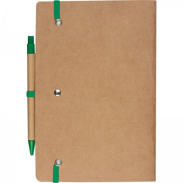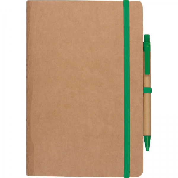 Notatnik A5 z czystymi stronami i długopisem z materiałów z recyklingu CHLOE / Zielony