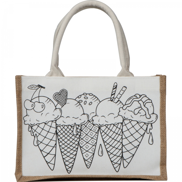 Torba z juty do kolorowania z kredkami 6 kolorów ELISA / Beżowy