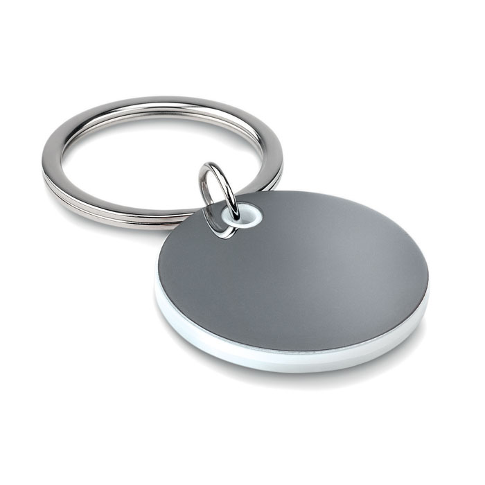 Okrągły brelok na klucze wykonany ze stali nierdzewnej oraz ABS.
