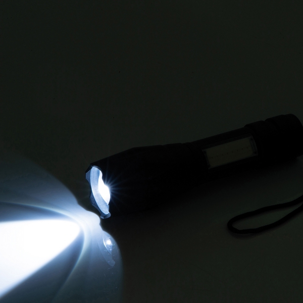 Plastikowa latarka COB o pojemności 800 mAh to praktyczne i wszechstronne narzędzie wyposażone w diodę COB, która umieszczona na rączce zapewnia dodatkowe źródło światła. Latarka ta jest idealnym narzędziem do precyzyjnych zadań. Latarka jest ładowana za pomocą kabla USB-C, który znajduje się w zestawie. Wygodny pasek na rękę zapobiega przypadkowemu wyślizgnięciu się latarki, co zwiększa komfort i bezpieczeństwo użytkowania. To idealny i ekonomiczny gadżet do użytku domowego i nie tylko.