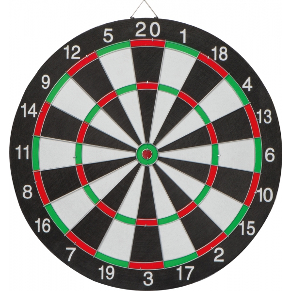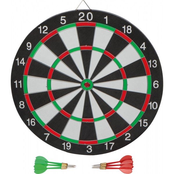 W zestawie: dwa zestawy rzutek (po 3 szt. w zestawie) oraz dwustronna tarcza.