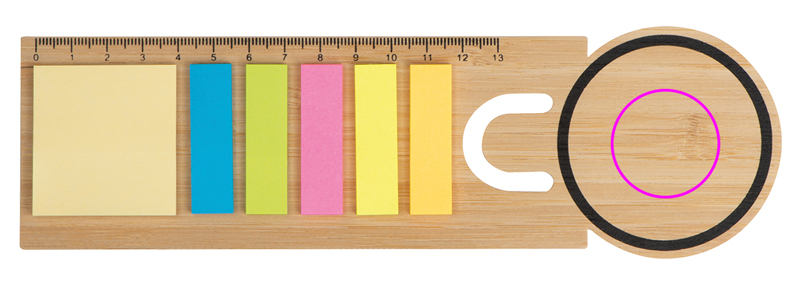 Drewniana zakładka do książki to doskonały wybór między innymi jako gadżet dla studenta lub praktyczny dodatek dla uczestników konferencji. Zakładka ta idealnie sprawdzi się do oznaczenia strony w książce lub ważnych fragmentów w notatkach. Dodatkowo, zawiera również karteczki do markowania, po 25 szt. z każdego rodzaju, i nadrukowaną linijkę ze skalą do 13 cm, co czyni ją wielofunkcyjnym i kompaktowym gadżetem. Logo firmy można zamieścić na zakładce w dowolnym, wolnym miejscu, by dyskretnie promować firmę. Jej dodatkowym atutem są wykorzystane materiały - drewniana baza jest w pełni ekologiczna i przyjazna środowisku. Karteczki są samoprzylepne, a miarka na zakładce pozwala na szybkie mierzenie bez potrzeby dokupowania linijki.