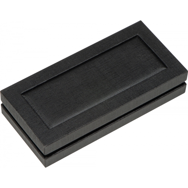 Elegancki zestaw piśmienniczy marki Ferraghini. Nowoczesne etui w kolorze czarnym charakteryzuje się nie tylko oryginalnym designem i wnętrzem pudełka, ale również wysoką jakością artykułów piśmienniczych. Wewnątrz pudełka znajdziemy pióro kulkowe i metalowy długopis z przekręcanym mechanizmem. Oba te elementy wykonane są z unikatowego, szczotkowanego metalu i wykończone estetycznymi, wąskimi klipsami, które nadają im subtelnego akcentu. Całość zestawu jest obła i smukła, co nadaje mu wyjątkowego charakteru, dzięki czemu zestaw ten nada się zarówno jako luksusowy prezent biznesowy, jak i kobiecy upominek. Długopis i pióro pozostawiają na papierze precyzyjne, i płynne linie, a wkłady są koloru niebieskiego.