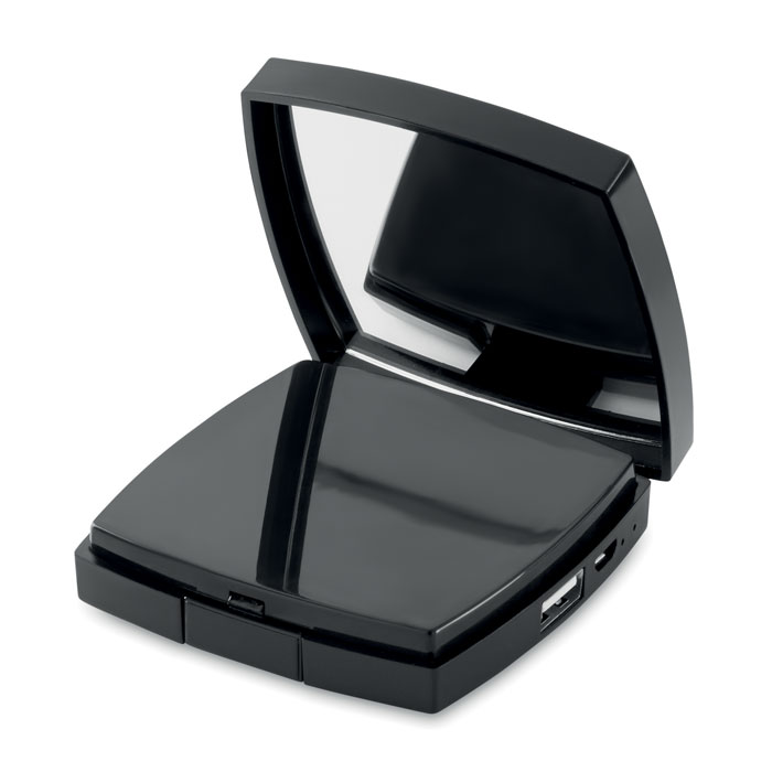 Urządzenie 2w1 power bank 3000 mAh z ABS i lusterko. Odpowiedni do ładowania smartfonów, dane prądu wyjściowego DC5V/1A. Zawiera diodę i kabel USB z wtyczką micro USB.