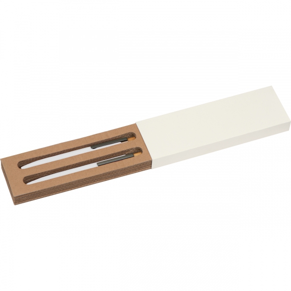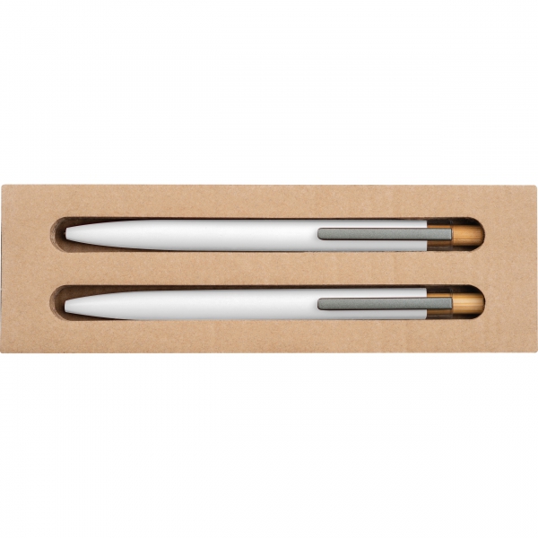 Zestaw piśmienny długopis półżelowy i ołówek automatyczny z aluminium z recyklingu SIEGFRIED / Biały