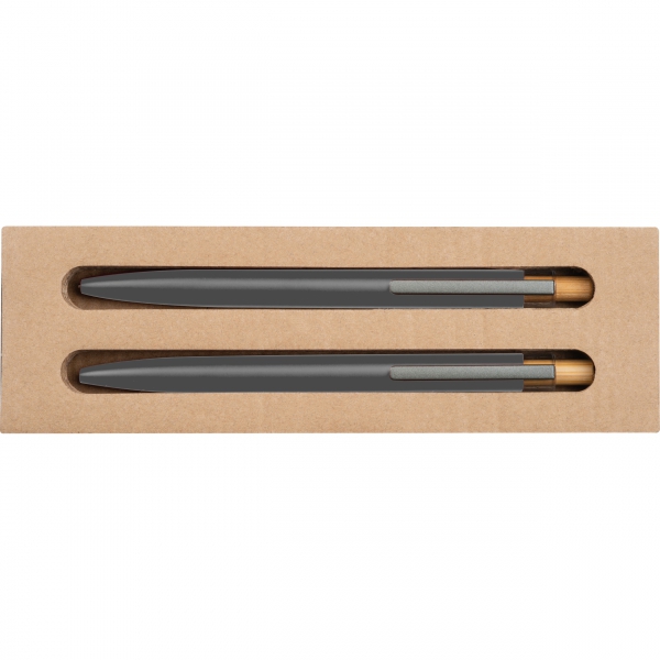 Zestaw piśmienny długopis półżelowy i ołówek automatyczny z aluminium z recyklingu SIEGFRIED / Ciemnoszary