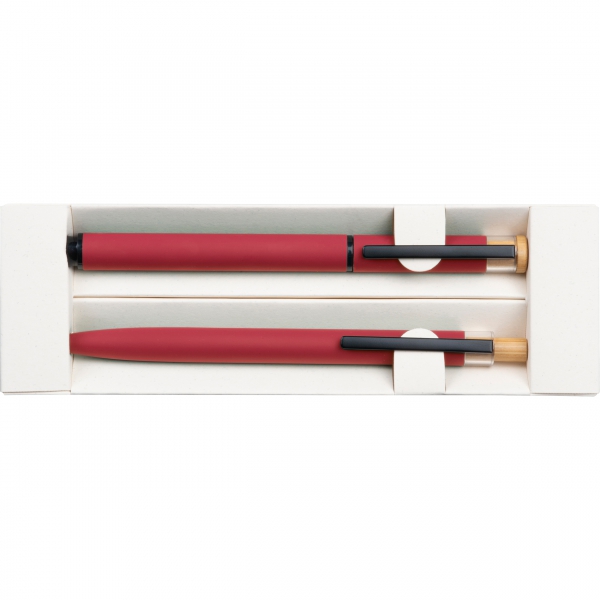 Zestaw piśmienny długopis i pióro kulkowe z aluminium z recyklingu RAFFAELE / Czerwony