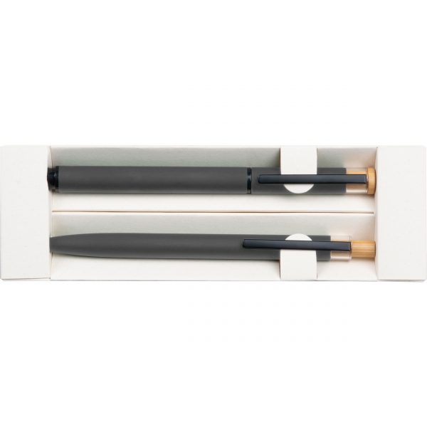 Zestaw piśmienny długopis i pióro kulkowe z aluminium z recyklingu RAFFAELE / Ciemnoszary