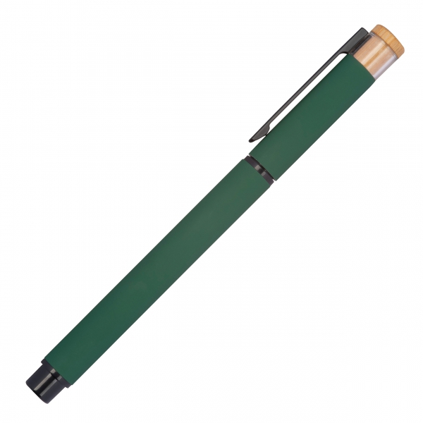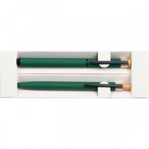 Zestaw piśmienny długopis i pióro kulkowe z aluminium z recyklingu RAFFAELE / Ciemnozielony