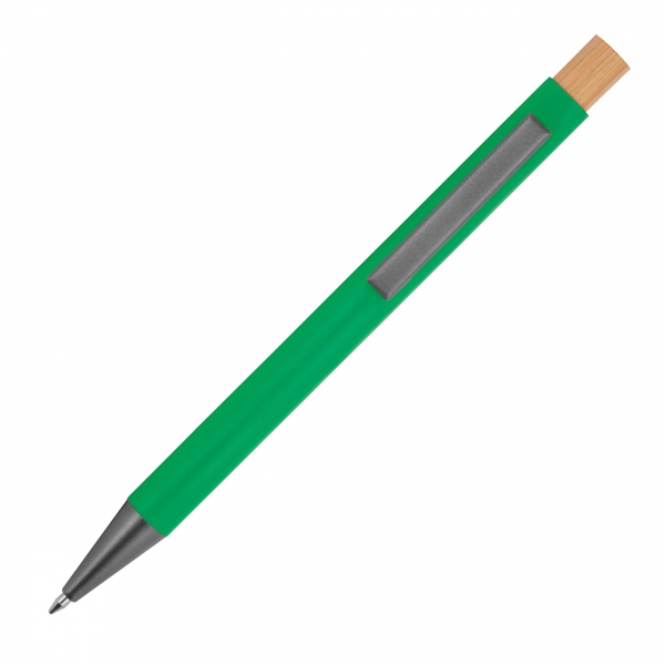 Długopis metalowy wykonany z aluminium pochodzącego z recyklingu to elegancki i praktyczny wybór na co dzień. Jego korpus wyróżnia się trwałością, a bambusowy przycisk dodaje naturalnego akcentu. Metalowy klips zapewnia wygodne przypięcie do notesu lub kieszeni, a wkład piszący na niebiesko gwarantuje płynność i komfort pisania.To połączenie klasyki i ekologicznych materiałów sprawia, że długopis doskonale sprawdzi się zarówno w biurze, jak i w codziennym użytkowaniu.